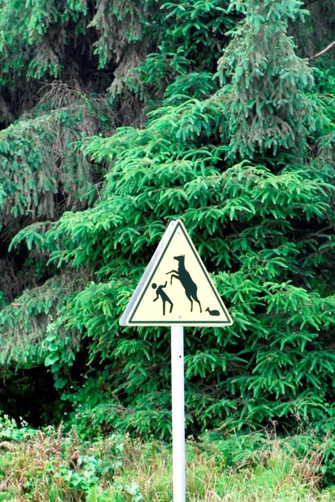 We all loved this sign. It is attempting to get the tourists to understand that the elk are very large and not very nice. The scale of one to the other is accurate.