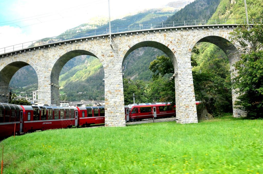 The Brusio Circular viaduct uses a full 360 degree loop to change altitude in a limited amount of space. |