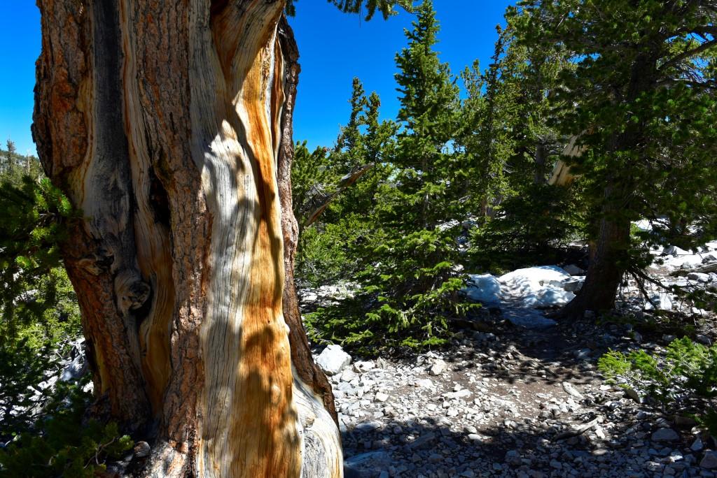 That distinction goes to the Bristlecone pine trees, which are found at extreme elevations in the great basin. These trees live pretty much at tree line which is about 10,000 feet in this park. They thrive where essentially nothing else does, and are thought to live for over 4,000 years. Even when they eventually die, their wood does not rot. It just lays there in the elements for maybe thousands more years?